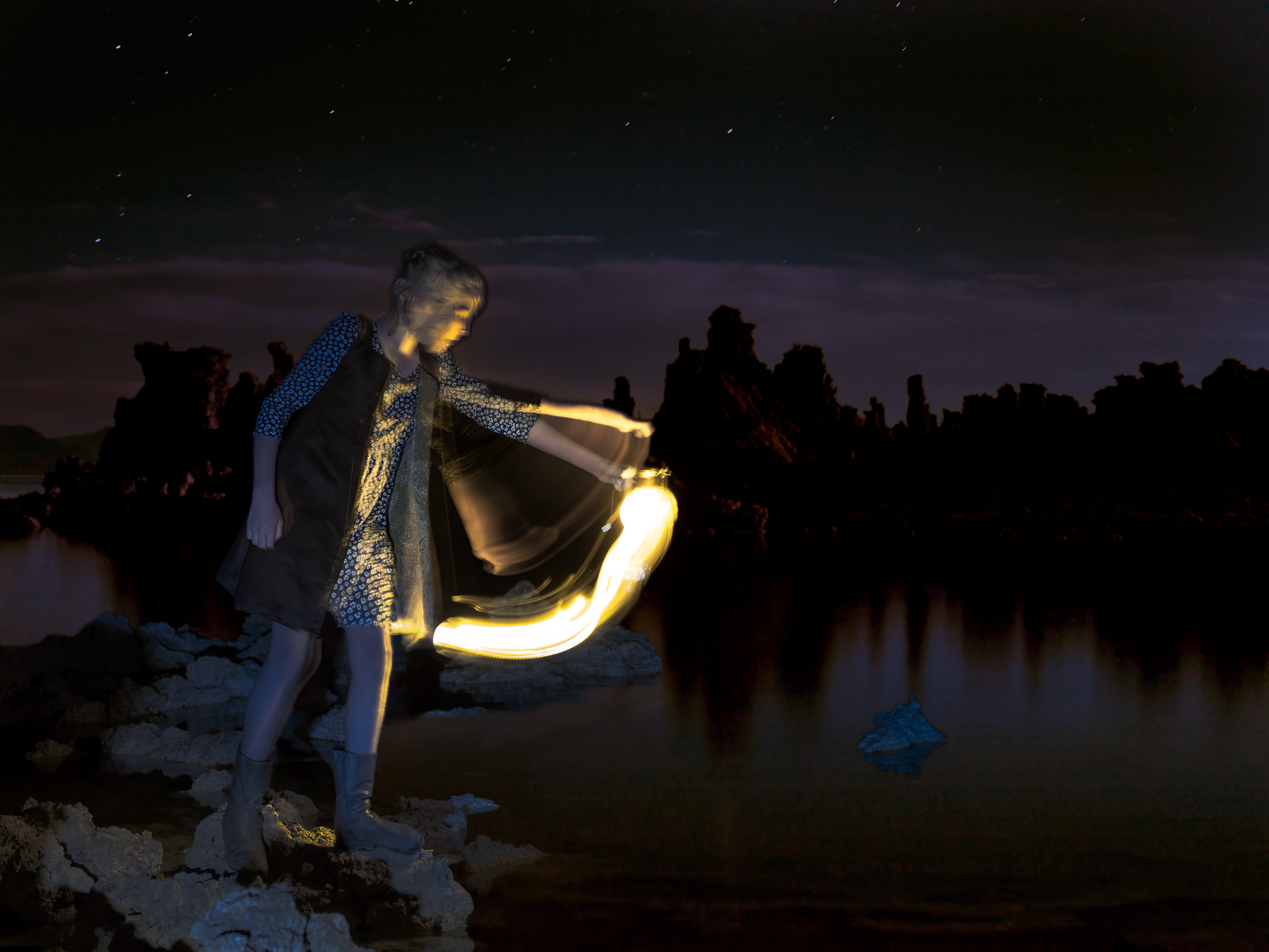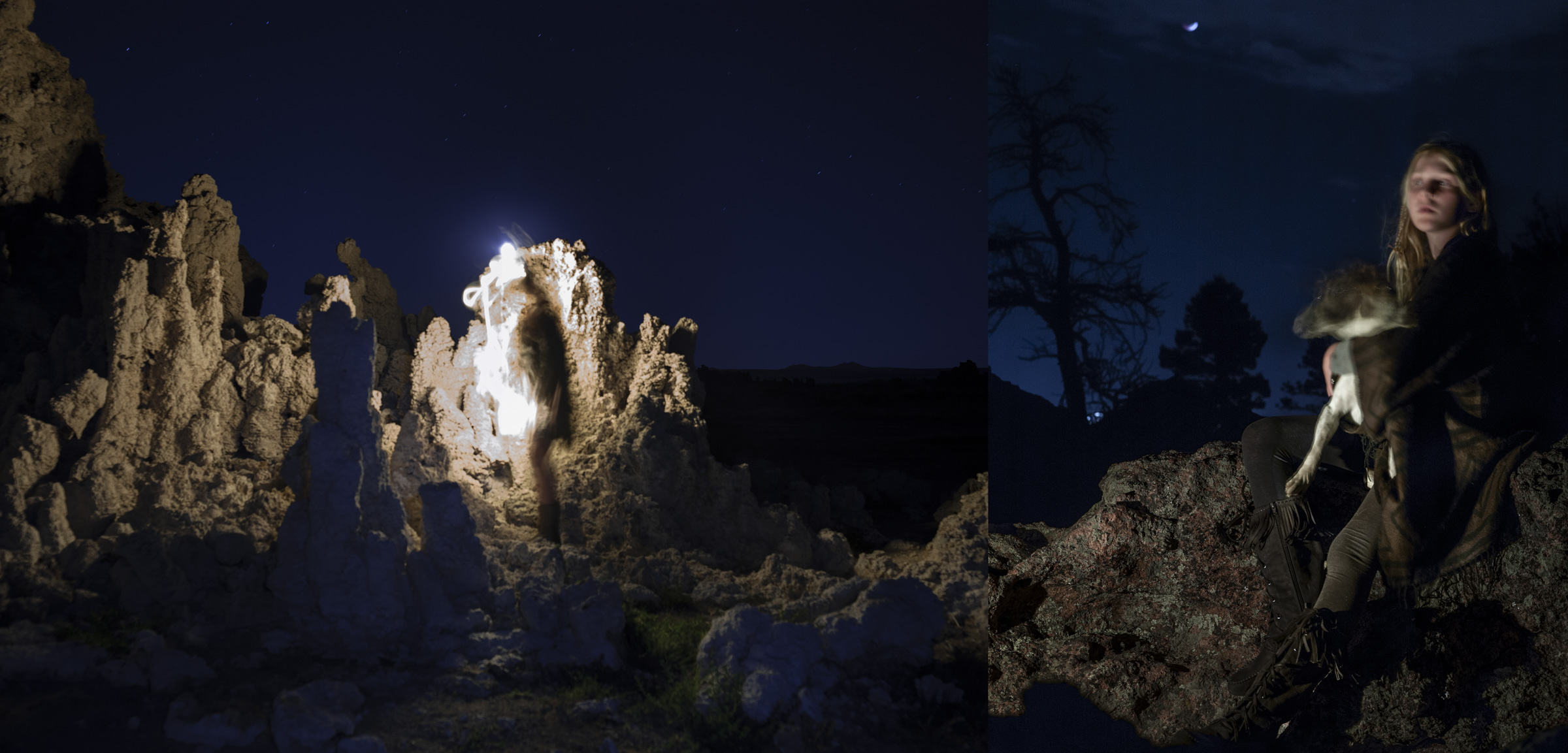 Seeking Elysium is a collaboration with my two children, made during a period when our family was being remade. We cast them as Artemis and Persephone — the forever maiden braving the darkness alone, the daughter torn between her mother's realm and the underworld — and built a dreamscape across the country's state and national parks.